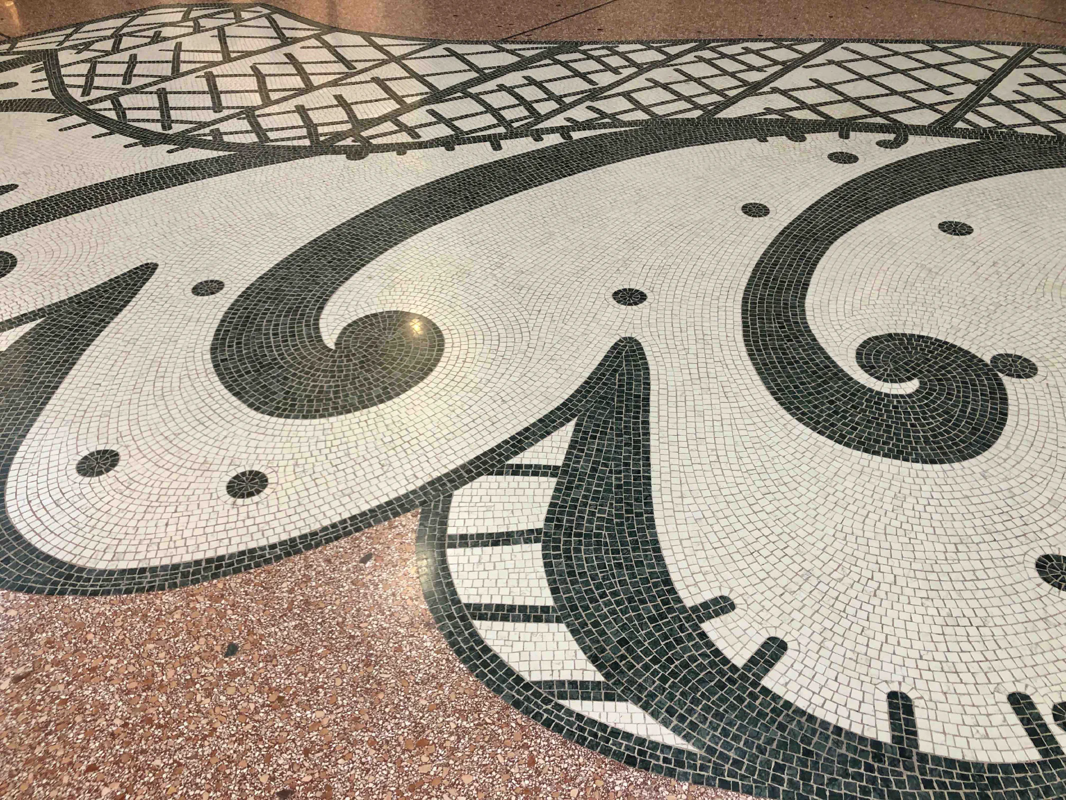 Valérie Mannaerts a conçu une intervention artistique en mosaïque et granito pour le nouveau sol de la Bourse de Bruxelles. En phase préparatoire, je l’ai accompagnée pour mettre au point le mélange de granito, réaliser les échantillons témoins de la mosaïque et du granito et rédiger le cahier des charges.